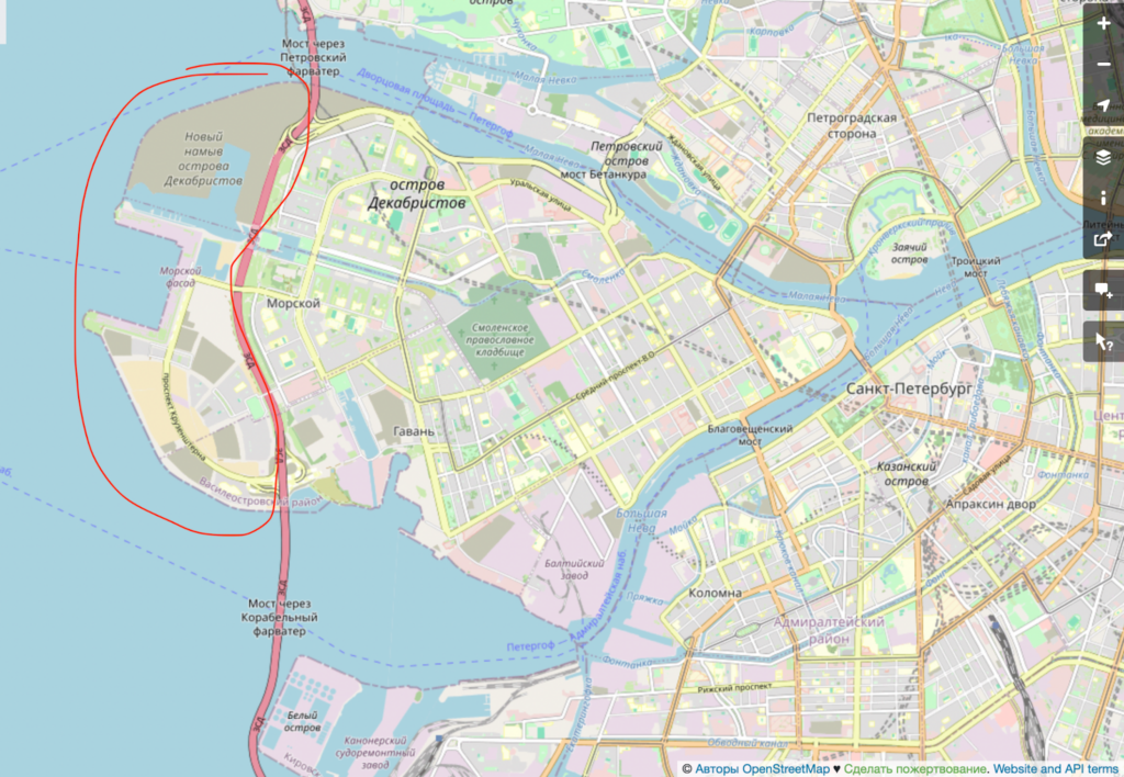 Интересно, что эта территория — далеко не первый намыв в городе в целом и в Василеостровском районе в частности. Наличная улица, улица Кораблестроителей — это тоже бывший залив. Именно поэтому у местных жителей есть шутка, что в Питере каждые 50 лет можно купить квартиру с видом на залив.