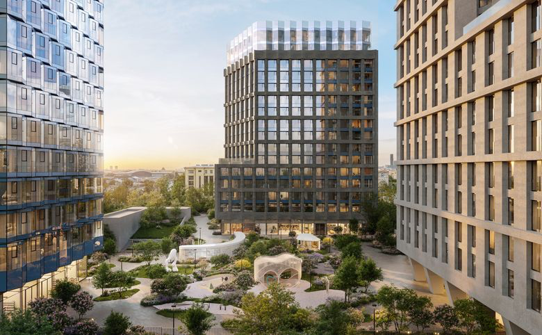 Комплекс состоит из 3 корпусов, каждый из которых имеет собственный оттенок: темно-серый, нежно-розовый и светло-серый. Во всех корпусах есть дизайнерское лобби от бюро GAAG Studio. В комплексе есть 2 ресторана с живописными видами на парк, 3 уютных кафе и современная фитнес-студия. Для владельцев автомобилей предусмотрен подземный паркинг на 344 места. Территория закрыта, установлена система контроля доступа и круглосуточное видеонаблюдение. В комплексе представлены квартиры с 1–3 спальнями и таунхаусы. Минимальные цены от 18 млн.
