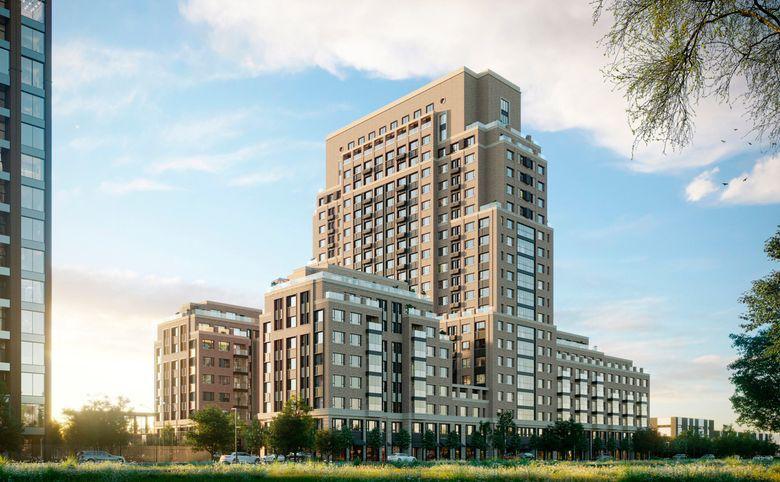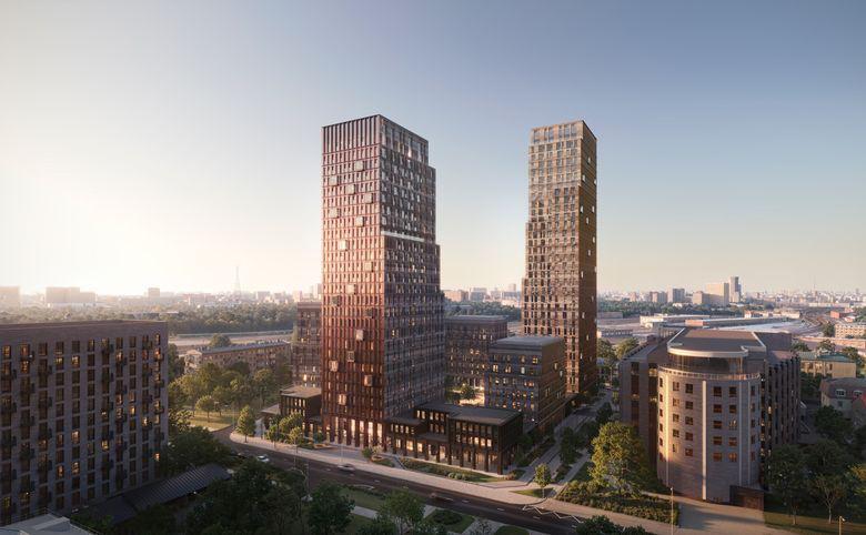 12 разноэтажных секций высотой до 23 этажей, выполненых в стиле современного американского традиционализма. Фасад облицован натуральным камнем, кирпичом, металлом и архитектурным бетоном. В комплексе спроектировано одноэтажное парадное лобби с зоной ресепшен, переговорными комнатами, зеленой террасой на крыше и большим навесом, ведущим до места остановки такси. Весь первый этаж дома спроектирован как клуб для жителей. На крыше лобби — общественные террасы с зимним садом и чайной. В вестибюле будут работать консьерж-сервис, игровая, рядом с главным лобби размещена детская комната. А со стороны двора общественная гостиная — помещение для мероприятий с кухней и санузлом. Минимальные цены от 22,5 млн.