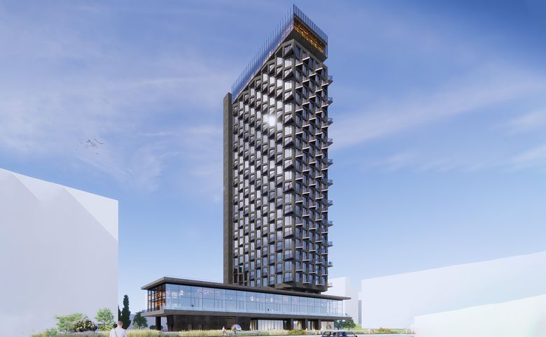 Проект представляет из себя 4 башни разной этажности, с панорамным остеклением фасадов, алюминиевыми композитными панелями и декоративными решетками.