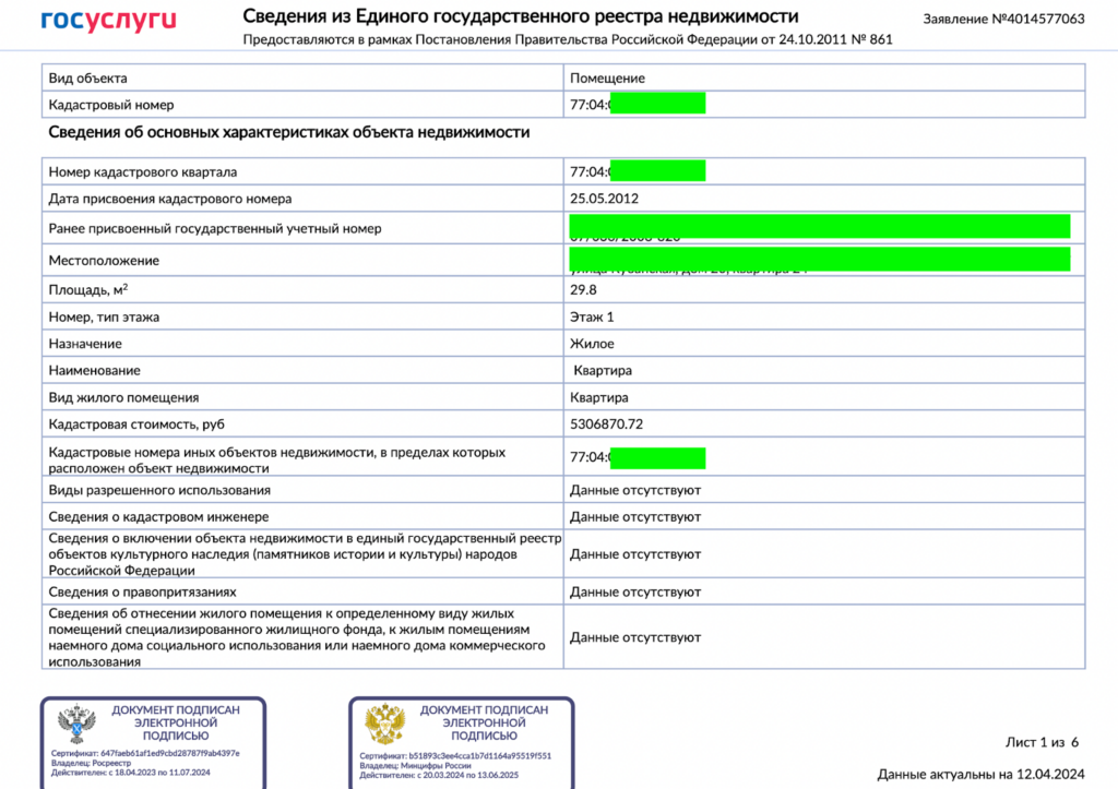 - корректные данные квартиры (адрес, этаж, количество комнат. Данные должны совпадать с теми, что в выписке ЕГРН);