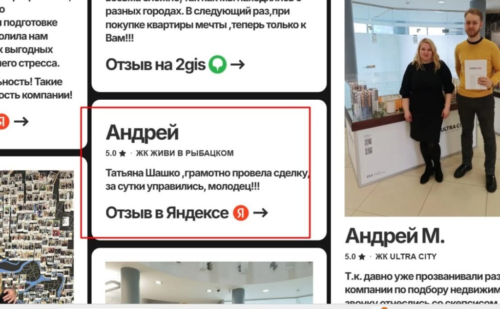 Клиент остался очень доволен сделкой. Спустя время он написал честный отзыв о работе с менеджером Татьяной Шашко.