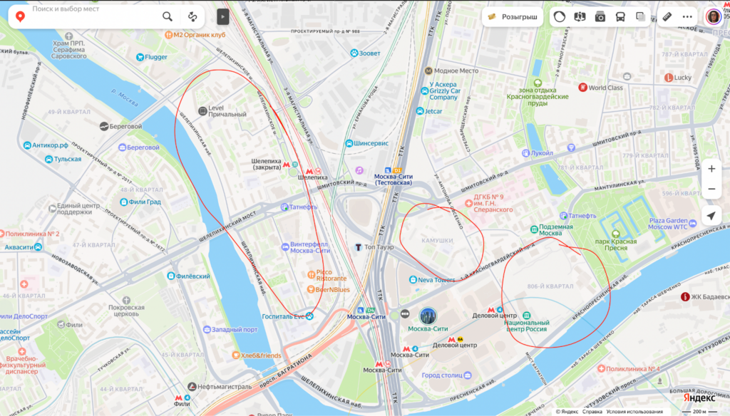 Сама локация Большого Сити уже полностью застроена. Поэтому для возведения новых высотных зданий используются близлежащие районы, такие как Камушки и Шелепиха.