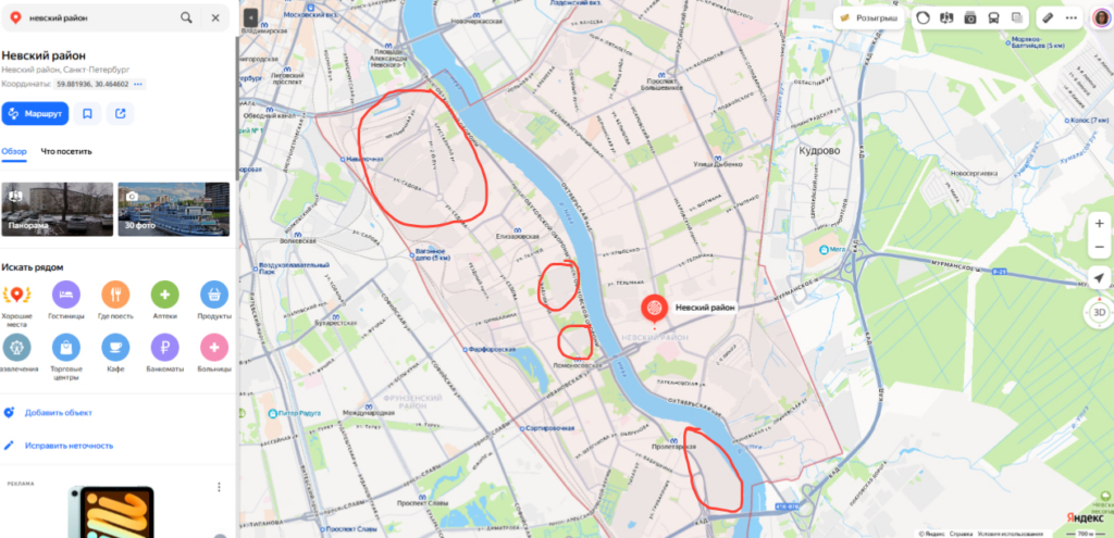 На территории Невского района есть участки, где ранее были промышленные предприятия и заводы. Большая их часть уже давно не работает. Поэтому застройщики по чуть-чуть начинают освоение этих мест. Ведь город и район только выиграют от того, что вместо старых заброшенных промзон будут новые жилые кварталы, прогулочные зоны и социальная инфраструктура. Основные территории, перестройку которых мы ждем: