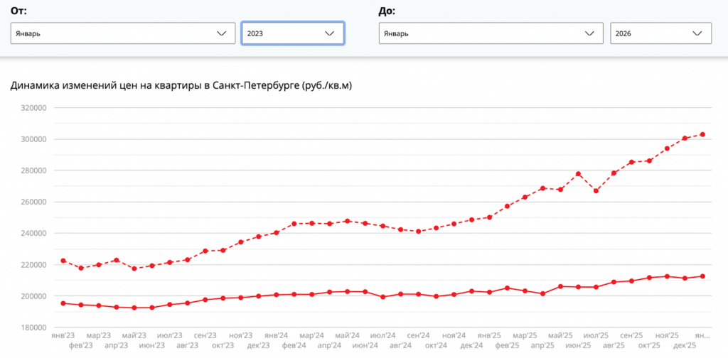 Рынок недвижимости Петербурга в 2026 году испытал значительные изменения, особенно заметные в разнице цен на квадратный метр между первичным и вторичным сегментами.