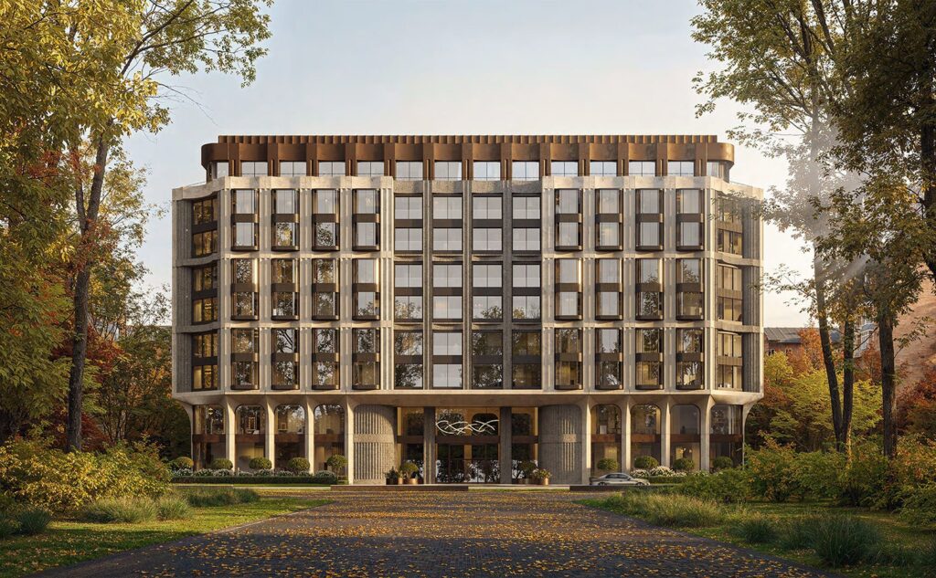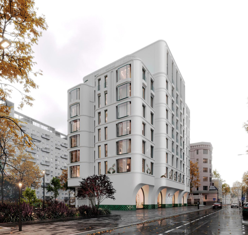 - ЖК «Резиденция Омега», Aurix Development. Клубный дом в Гагаринском районе с видом на Воробьевы горы также на месте бывшего здания АТС: