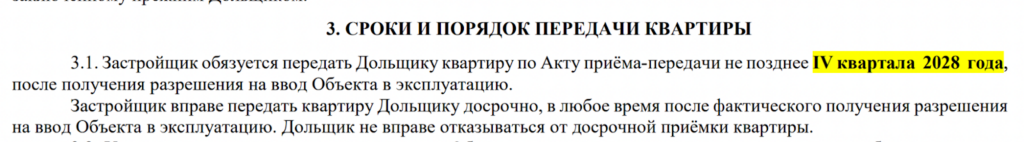 В договоре закреплен только один срок — крайний срок передачи ключей.