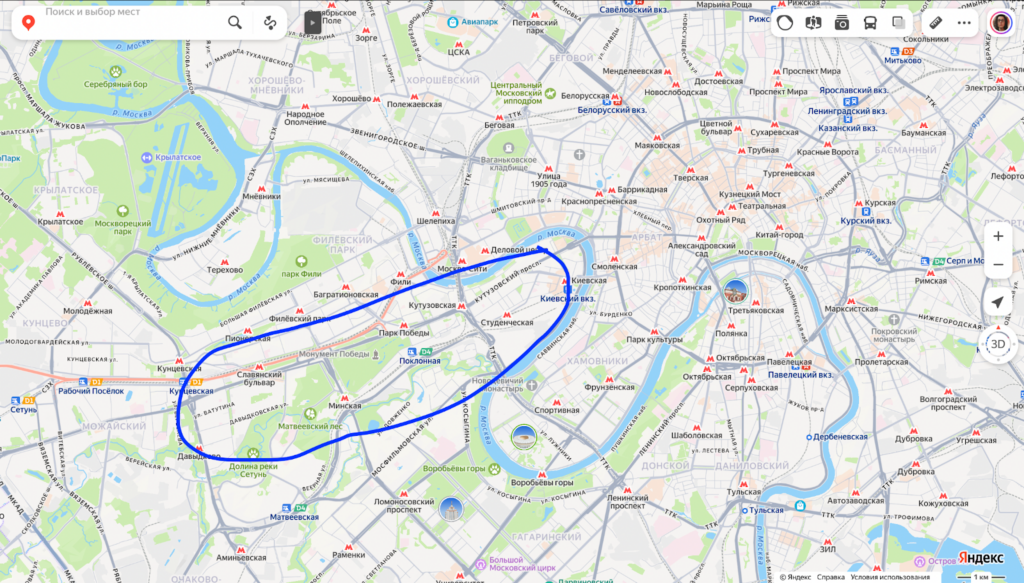 - станции метро «Киевская», «Кутузовская», «Парк Победы», «Славянский бульвар»;