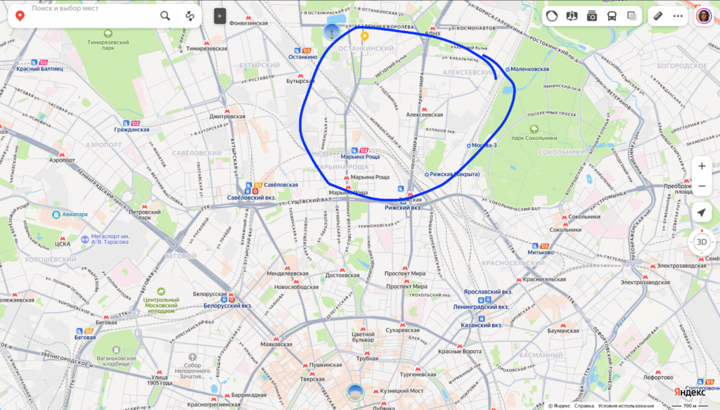 - станции метро «ВДНХ», «Алексеевская», «Рижская», «Марьина роща»;