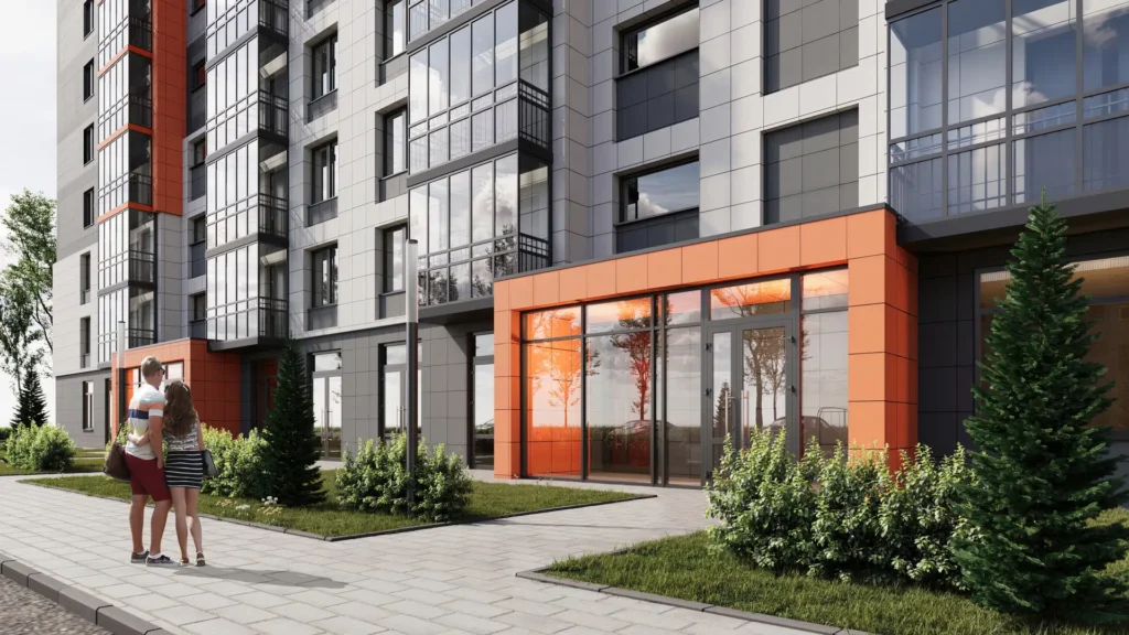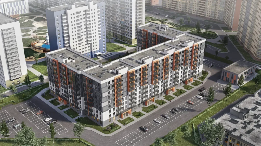 - Конструктив: монолит-кирпич, вентилируемые фасады с облицовкой керамогранитом