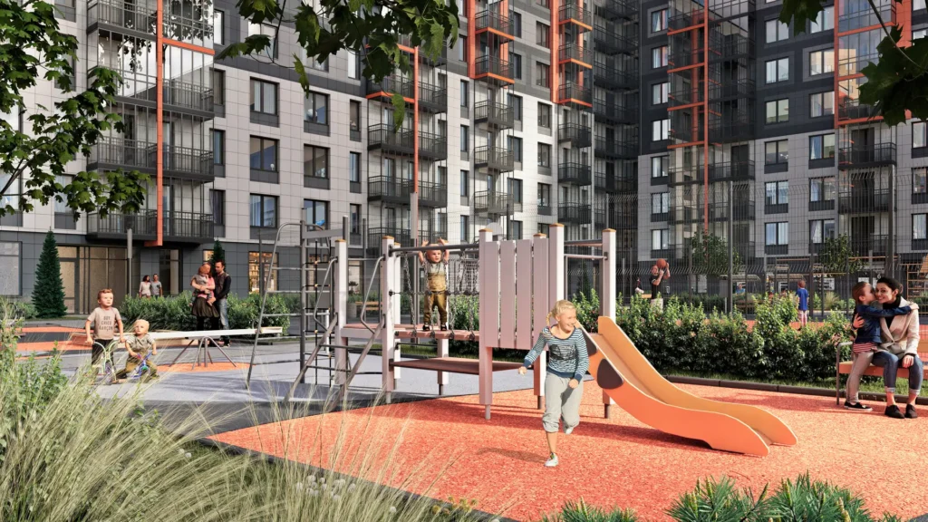 - Продуманные пешеходные маршруты и удобные подходы к подъездам.