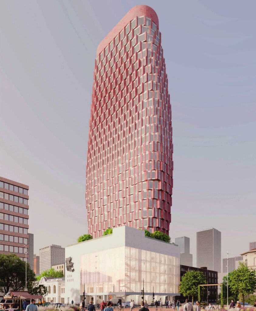 Проект предполагает строительство 135-метрового небоскрёба высотой 27 этажей, размещённого на пятиэтажном стилобате. Архитектура комплекса отличается сложной пластикой фасадов и выразительным силуэтом, формирующим новый визуальный акцент района.