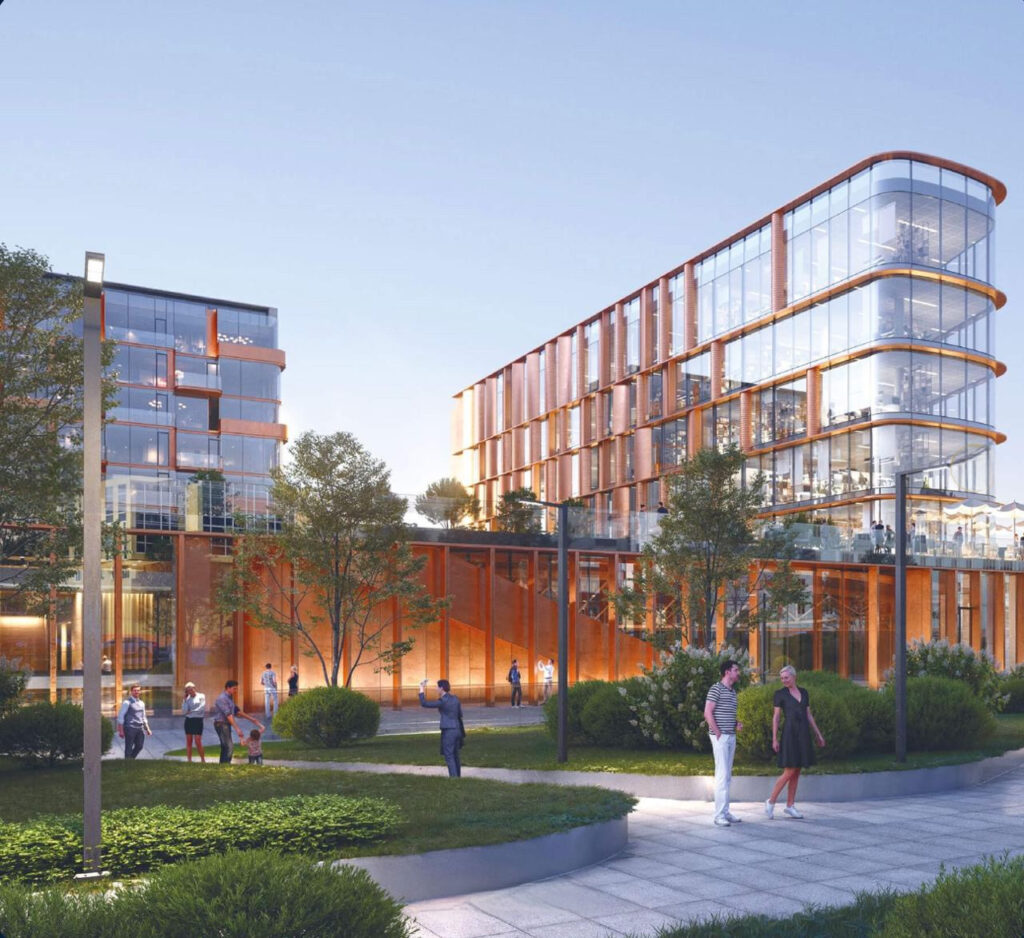 Такое решение создаёт эффект лёгкости, динамики и игры света, а здания органично вписываются в парковую среду.