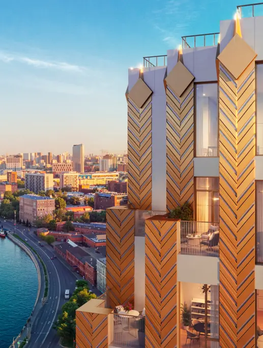 ЖК ERA — премиум-квартал на Дербеневской набережной, где классика ар-деко переосмыслена для современного города. Архитектура GAFA — ступенчатые силуэты, арочные акценты, натуральный камень и металлические панели — формирует выразительную горизонталь и открывает виды на Москву-реку и центр.