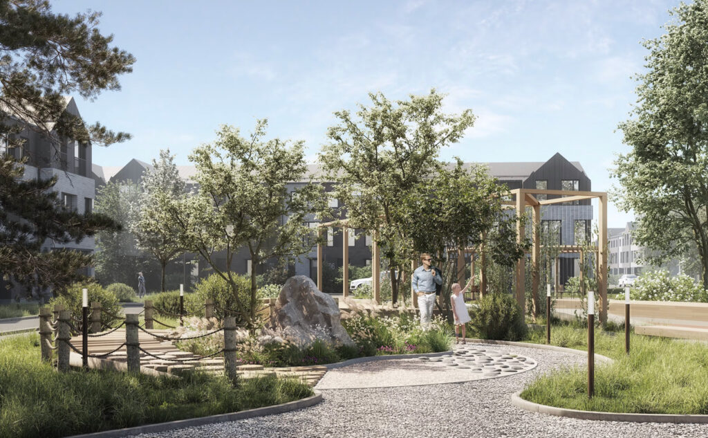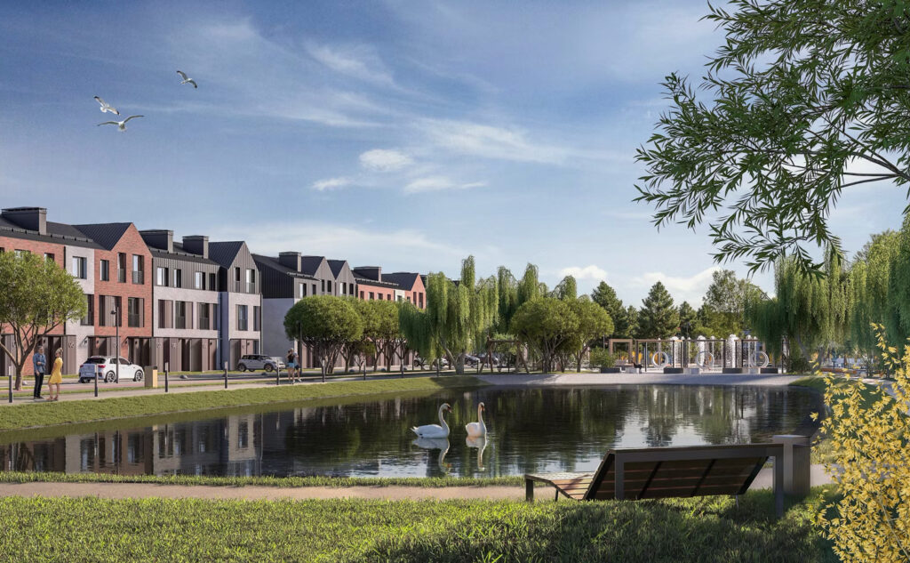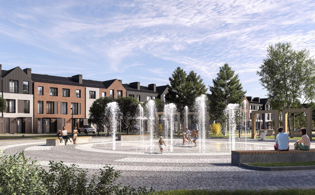 В центре поселка расположен живописный пруд — летом это пляж и прогулки, зимой — каток. Бульвар, площади, детские площадки, зоны тихого отдыха и спортивные маршруты создают среду, в которой хочется не просто ночевать, а действительно жить.