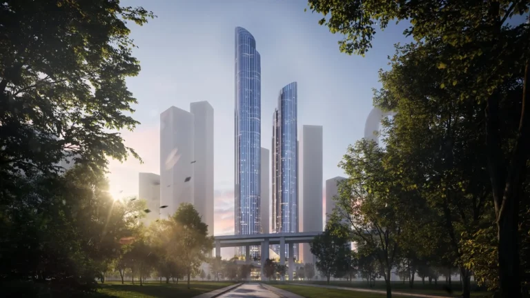 - Корпуса: 2 (жилая башня до 46 этажей, офисная — до 41)