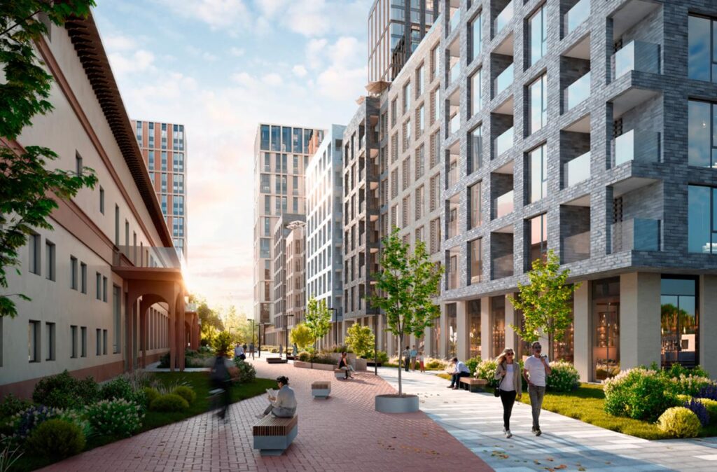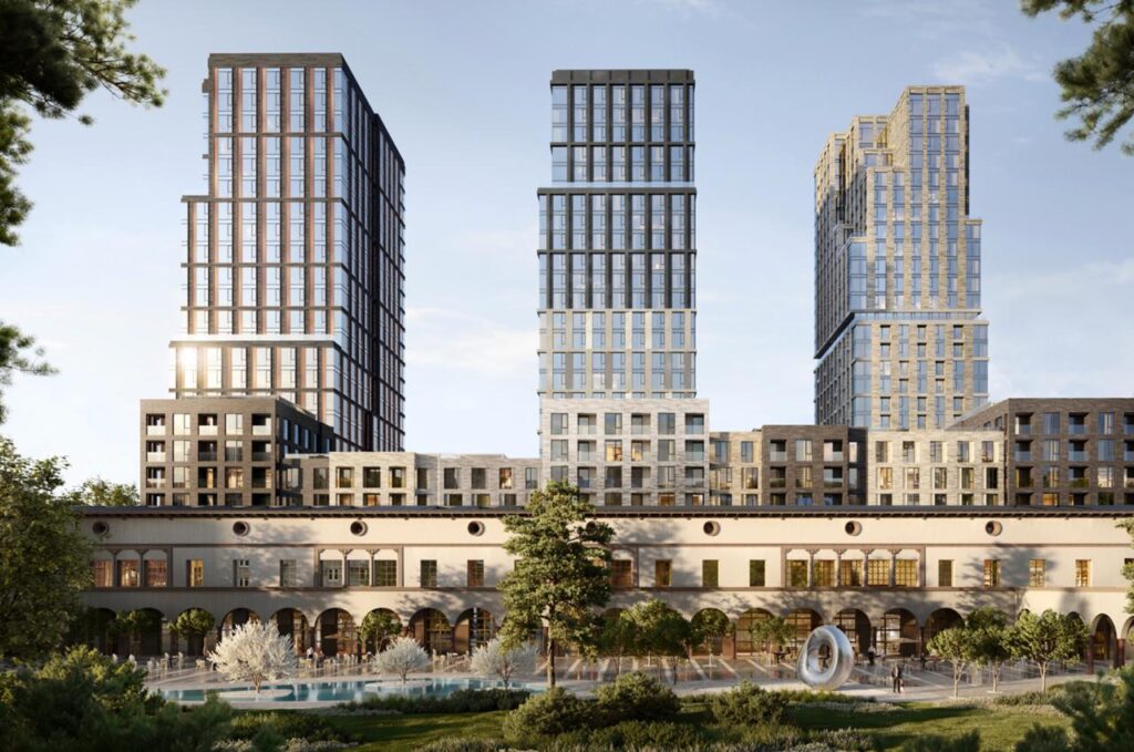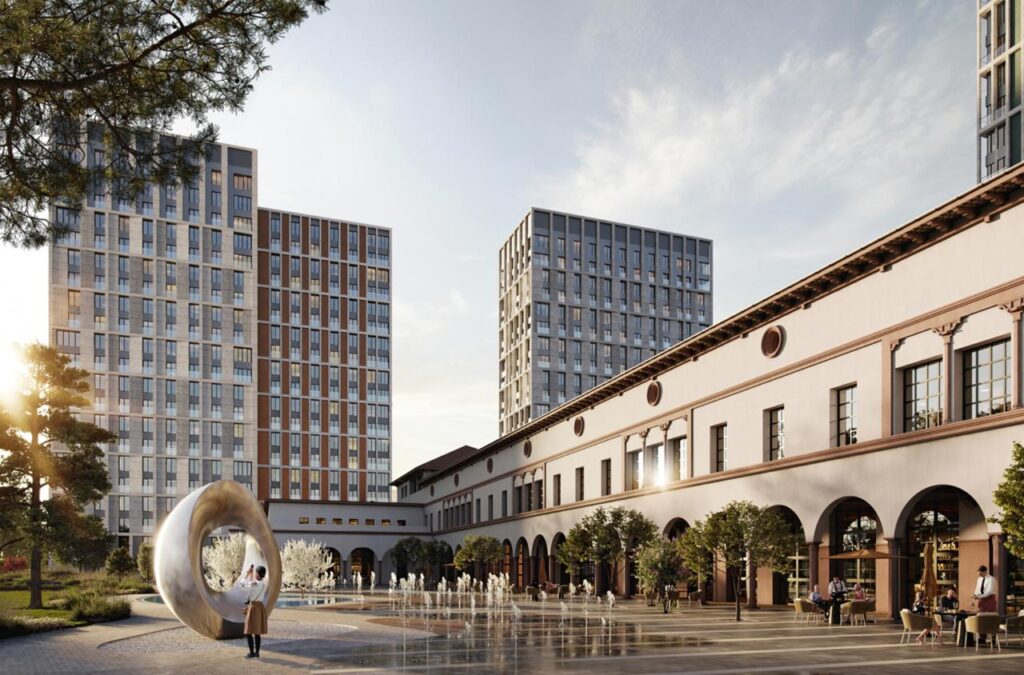 Проект разработан британским бюро SimpsonHaugh, ландшафт — Gillespies. Квартал ступенчато нарастает от камерных домов Unique (6–9 этажей) к башням (18–35 этажей). Фасады — сочетание камня, металла и клинкера; панорамное остекление; акцент на естественном свете.