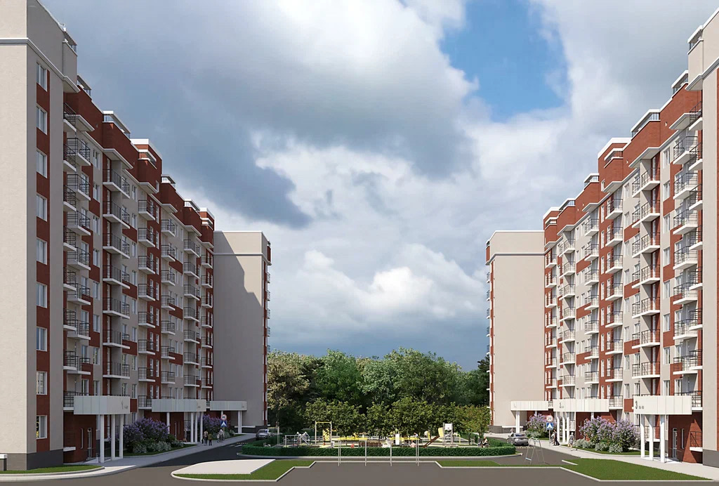 ЖК «Ступино-Парк» — это один корпус высотой 9 этажей, выполненный по кирпично-монолитной технологии. Фасады облицованы красным и бежевым кирпичом, что формирует аккуратный и спокойный архитектурный облик дома.