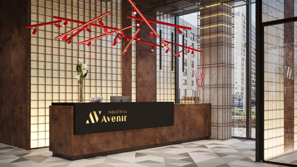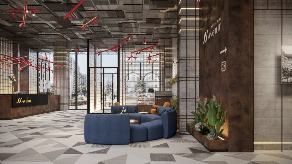 Industrial Avenir — это 13-этажный кирпично-монолитный апарт-отель с акцентом на индустриальную эстетику: