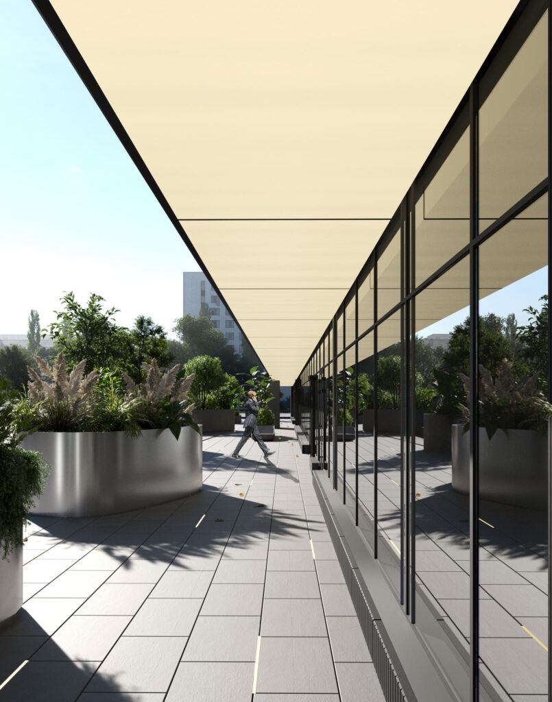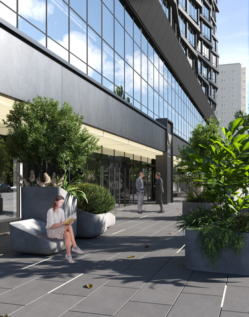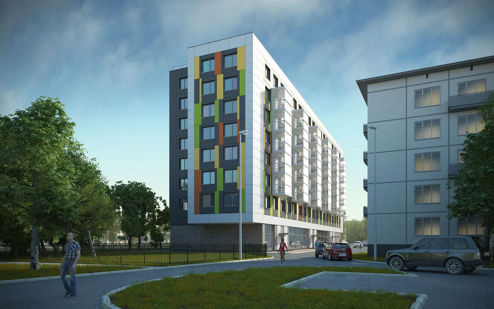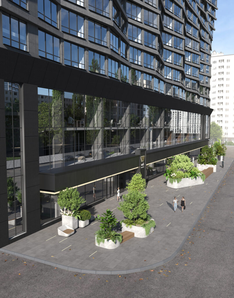 Комплекс представляет собой выразительное здание высотой до 22 этажей с динамичной архитектурой: