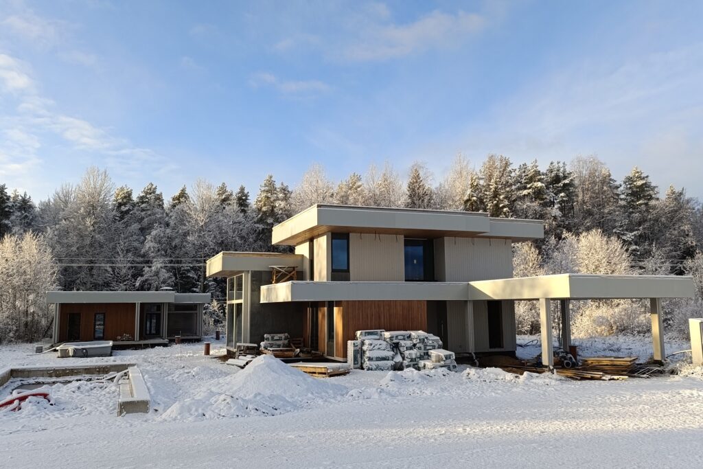 Коттеджи Villa Oivala выполнены из бруса/фахверка в едином архитектурном стиле хай-тек.