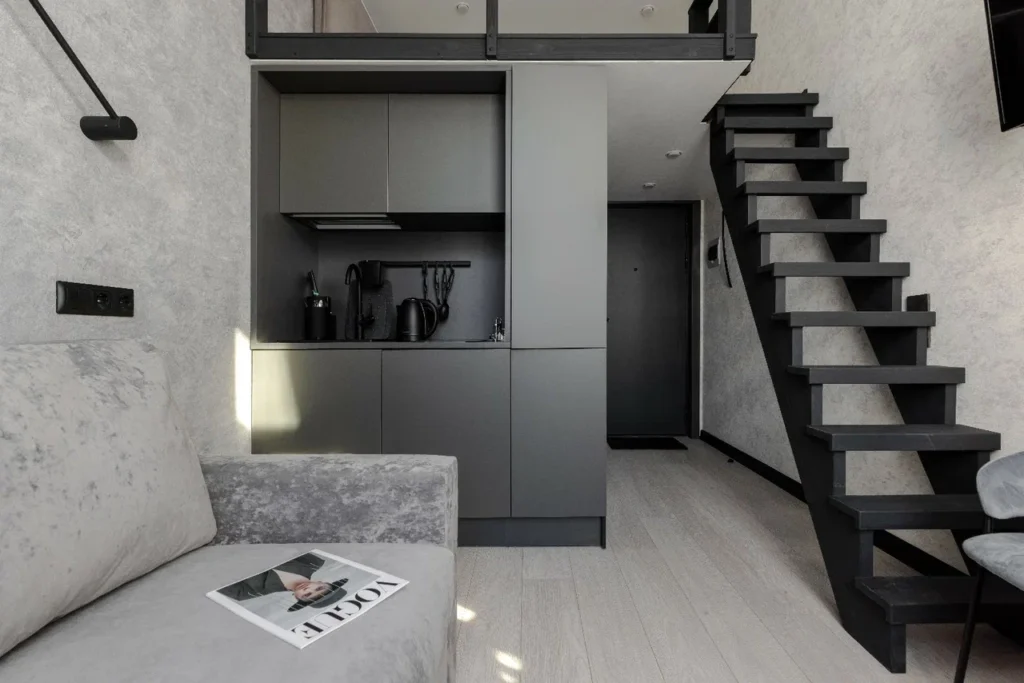 Апартаменты Park Side в СПб включают 120 юнитов площадью от 11,52 до 21,85 м². Высокие потолки (3,5 м) позволяют создавать второй ярус, а большие окна делают помещения более светлыми. В стоимость входят чистовая отделка, мебель, бытовая техника, текстиль и посуда — формат полностью готов к аренде с первого дня.