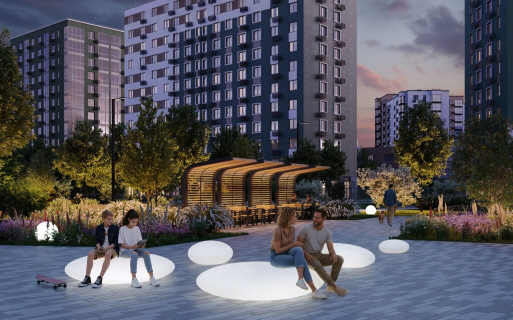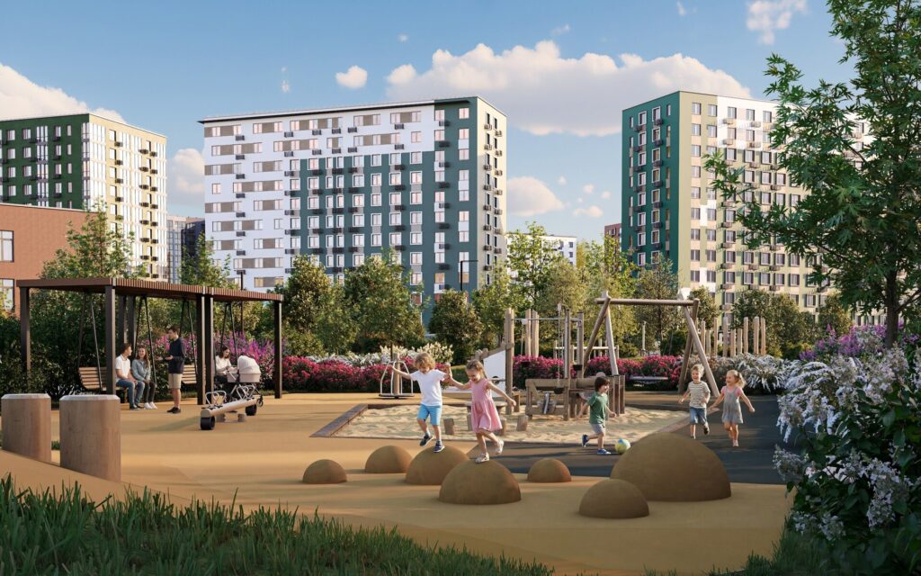 - дворы без машин с ландшафтным дизайном, зонами тихого отдыха.