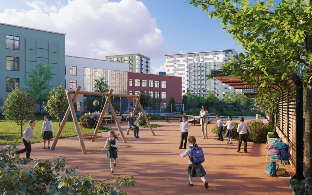 Маршруты к школам и садикам планируются так, чтобы дети могли ходить в обход проезжей части — это плюс к безопасности и удобству.