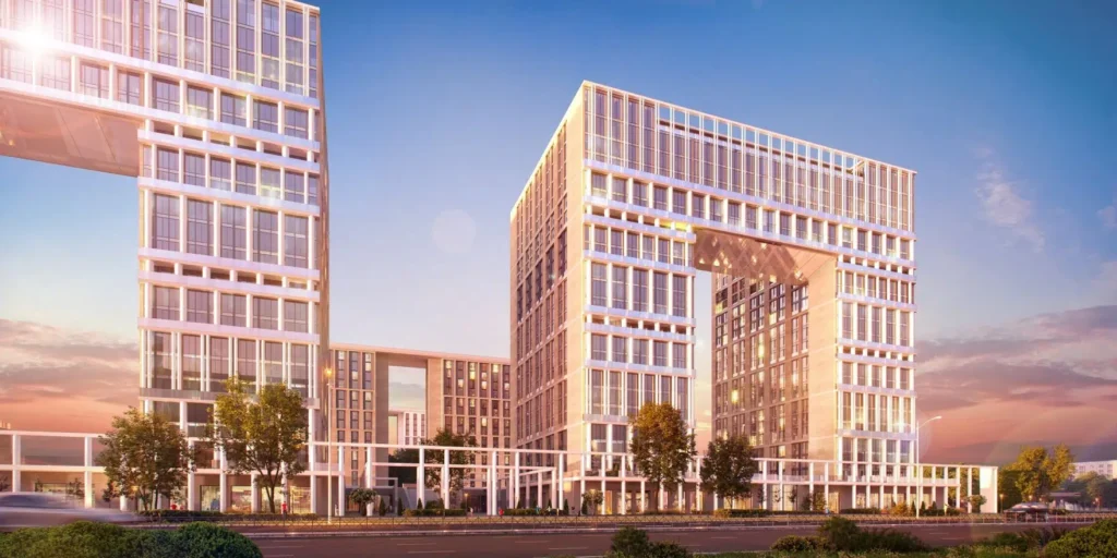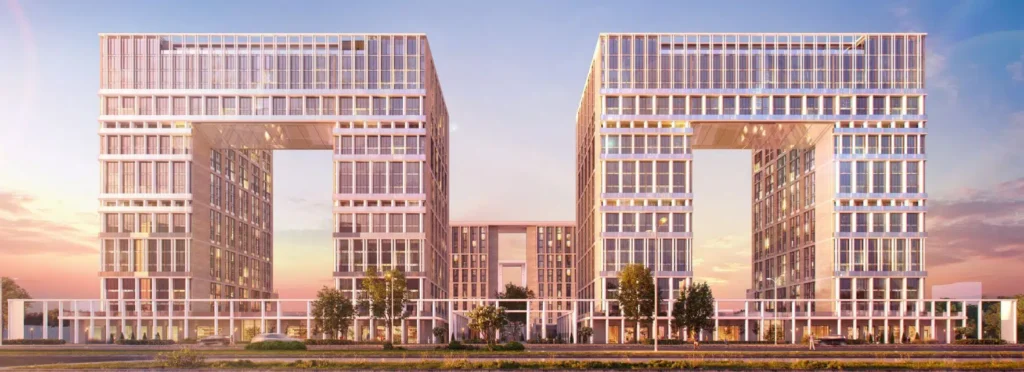 ЖК «Дефанс» — это два эффектных корпуса арочной формы, отсылающих к образу La Défense. Архитектура объединяет неоклассику и современный деловой стиль: