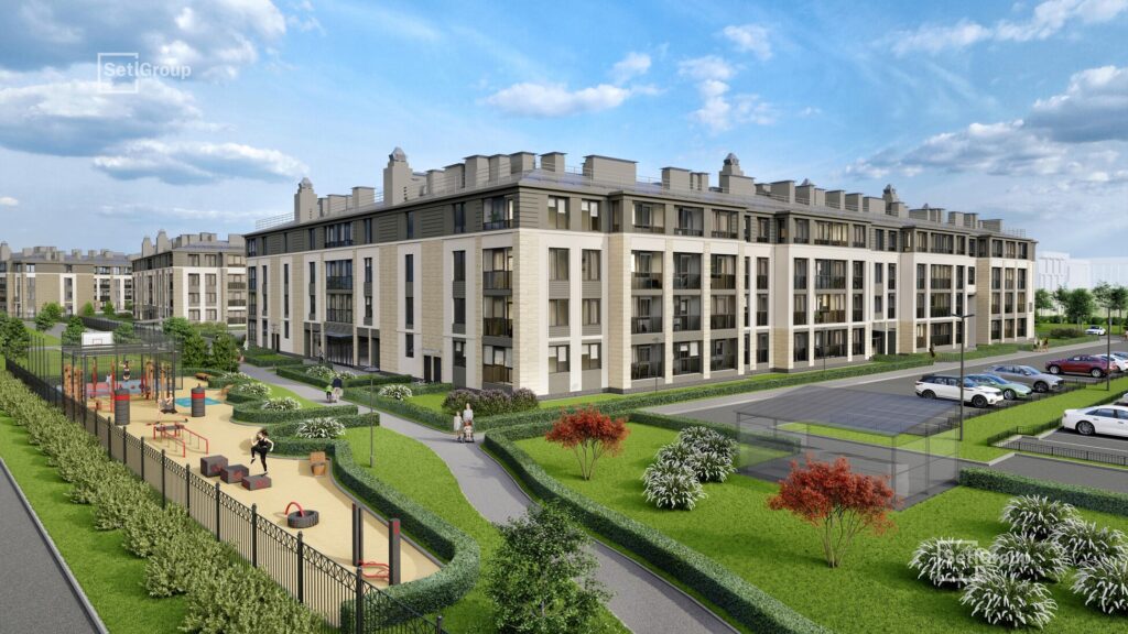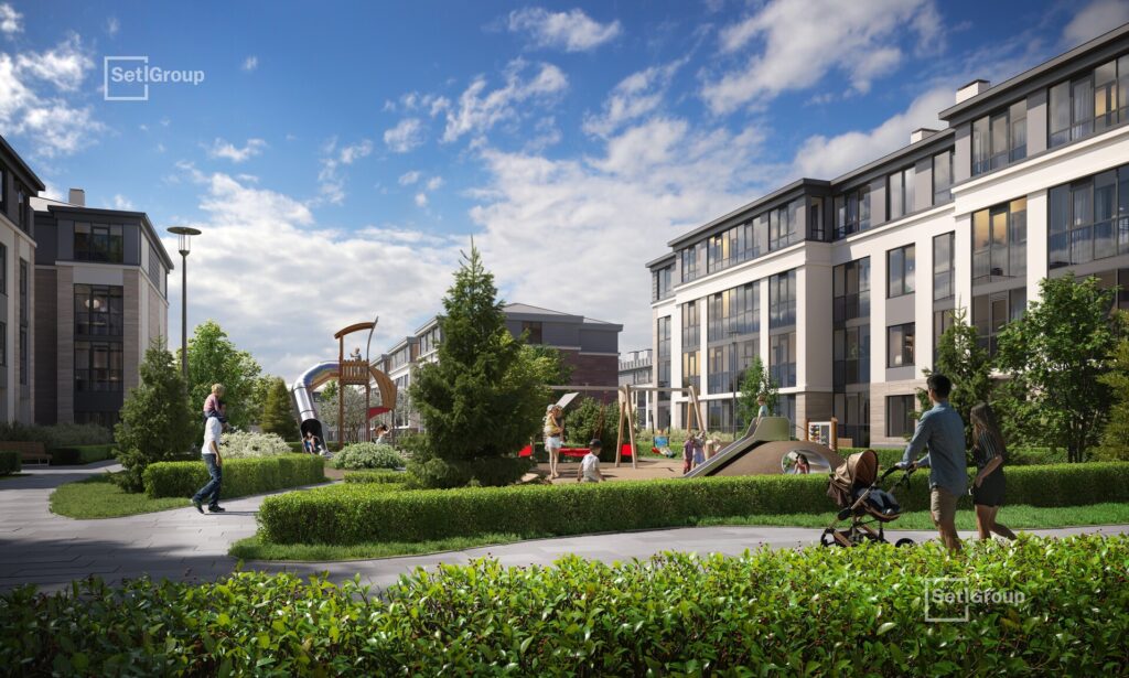 - Внутренние дворы без машин, детская площадка SetlKids, спорт-зона SetlSport.