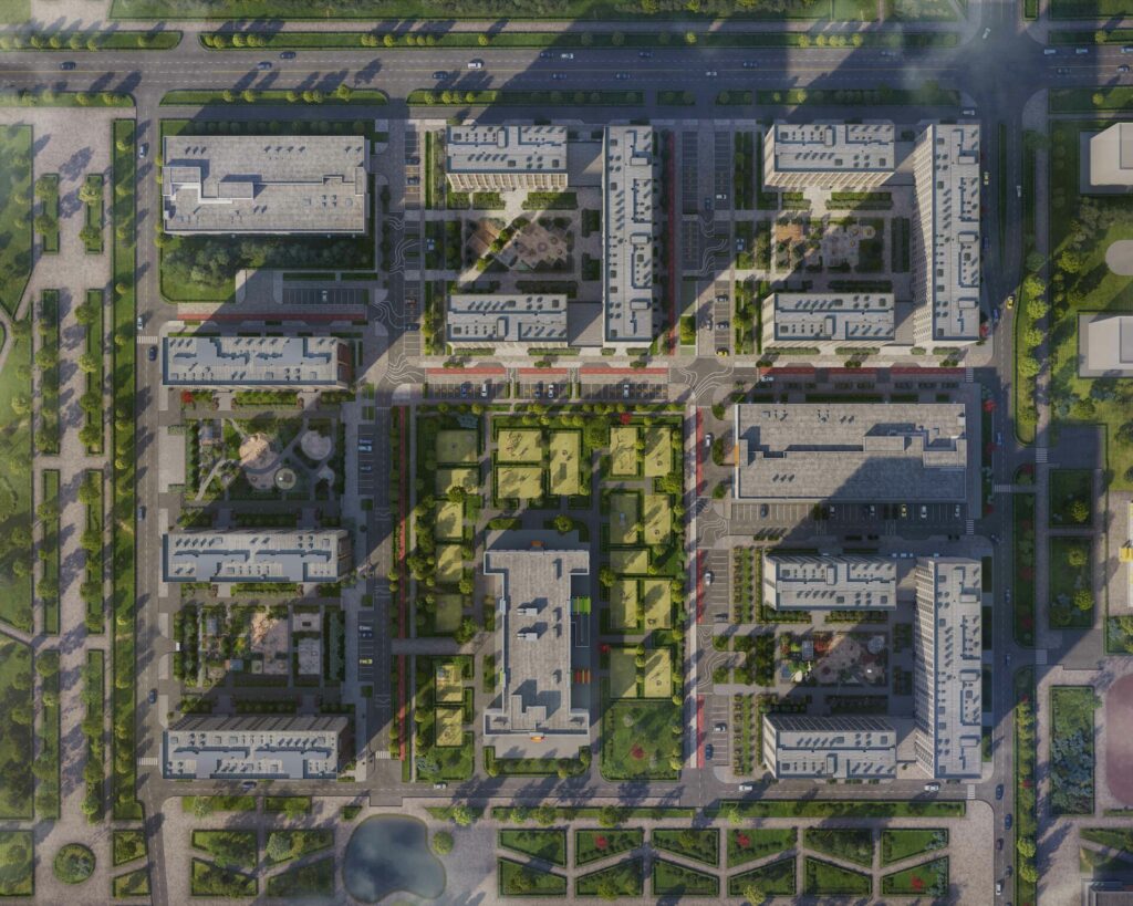 - Велодорожки, зоны отдыха, детские площадки