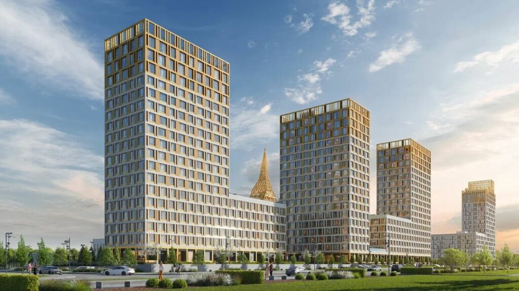 Проектом «GloraX Василеостровский» занимается архитектурное бюро «А.Лен»: переменная этажность, светлые фасады и металлические акценты, которые в солнечную погоду дают эффектные блики. Важная деталь для ощущения «бизнес-класса» — аккуратный ритм фасадов и ночная подсветка, которая делает комплекс заметным и собранным визуально.