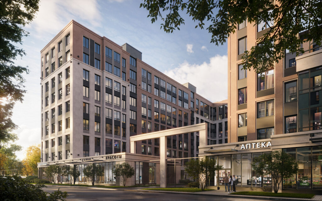 Архитектура ориентирована на современный городской стиль с лаконичными фасадами и аккуратным масштабом застройки.