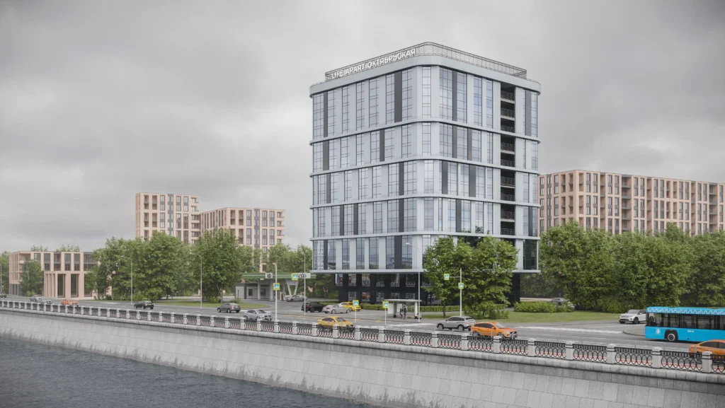 «Life Apart Октябрьская» — новый апарт-отель бизнес-класса, возводимый компанией «Максимум Лайф Девелопмент» в Невском районе Санкт-Петербурга, по адресу Октябрьская набережная, 56. Комплекс станет современным архитектурным акцентом на набережной, он сочетает комфорт проживания и выгодные инвестиционные возможности.