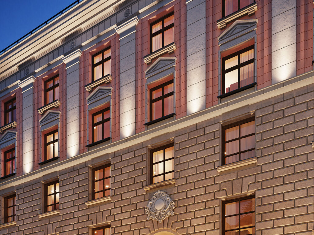 - на типовых этажах — классические пропорции и большие окна;