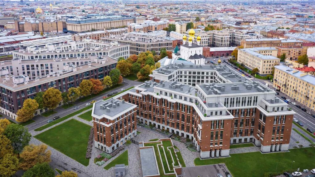 ЖК «Миръ» — флагманский проект RBI в Центральном районе Санкт-Петербурга. Комплекс расположен на Миргородской улице, всего в 10 минутах пешком от метро «Площадь Восстания» и Александро-Невской Лавры. Это дом в неорусской стилистике с подчёркнутой архитектурной пластикой, созданный по проекту Евгения Герасимова. Клубная атмосфера, виды на исторический Петербург и продуманная внутренняя инфраструктура делают ЖК «Миръ» одним из самых статусных проектов района.