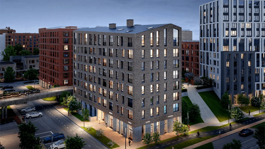 - высота домов — 6–12 этажей, без небоскрёбов;