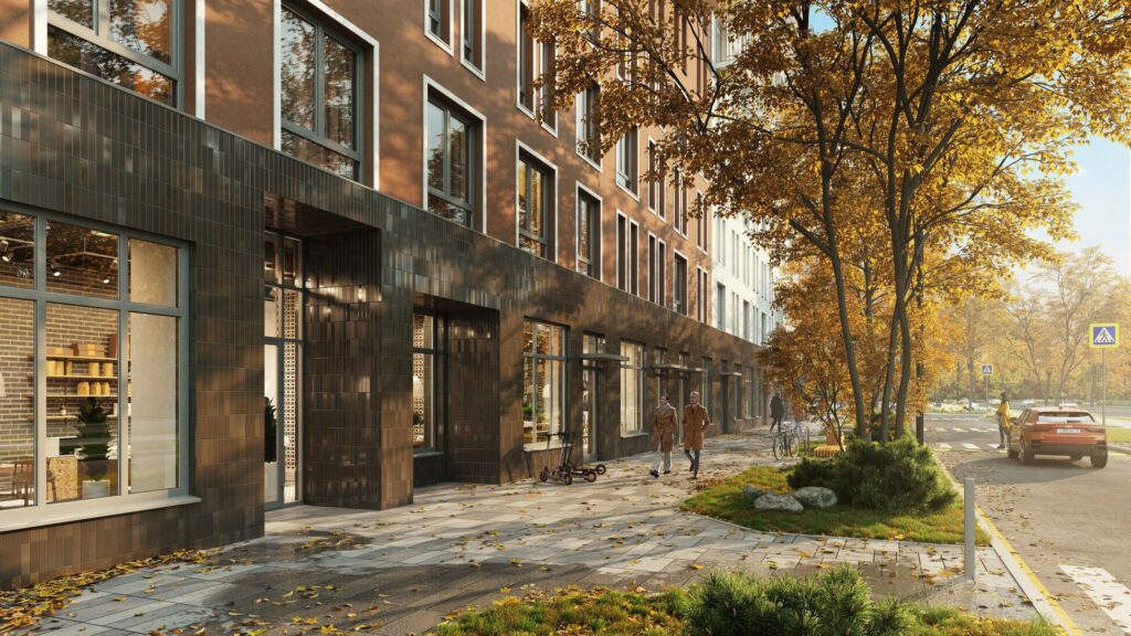 - безбарьерная среда — вход на уровне земли, никаких ступеней и высоких порогов;