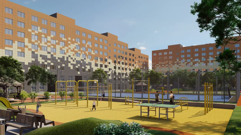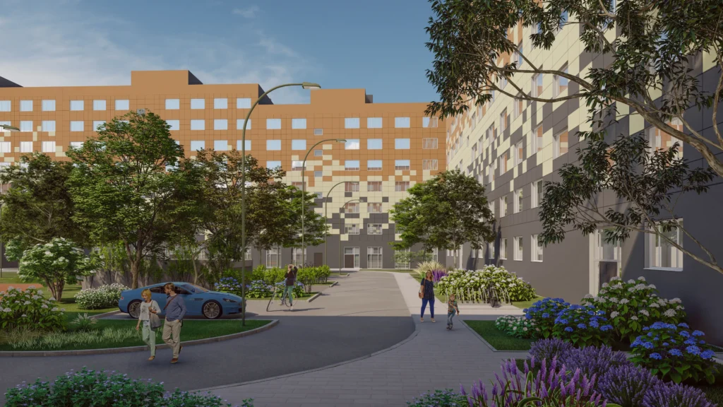 Двор ЖК Pixel спроектирован как большое общественное пространство: