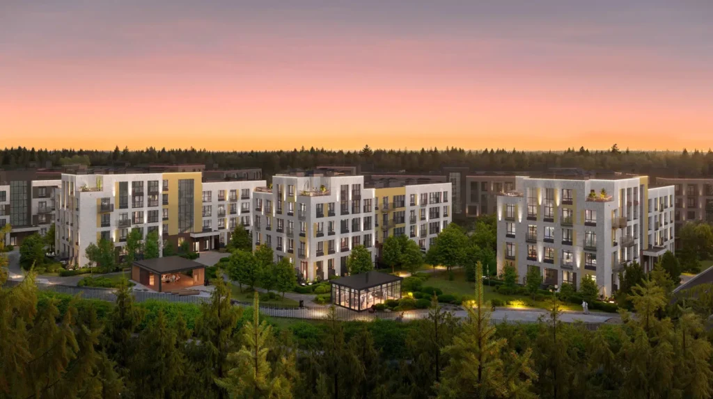 ЖК Ranta Residence в Зеленогорске — это 14 камерных корпусов высотой всего 4 этажа, выполненных в северной скандинавской эстетике. Все это создает формат клубной резиденции и обеспечивают спокойную атмосферу.