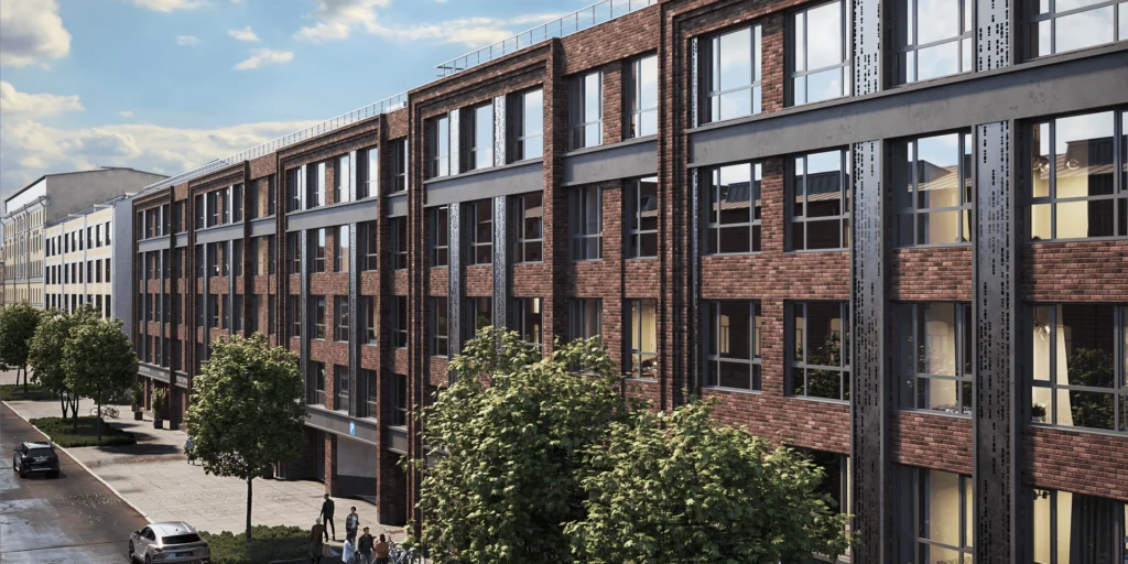 Фасады облицованы темным кирпичом ручной формовки и декорированы металлическими панелями с орнаментом в виде азбуки Морзе — отсылкой к истории завода Siemens & Halske, ранее располагавшегося на этом месте. Высота зданий варьируется от 5 до 9 этажей, что позволяет сохранить камерную атмосферу старого города.