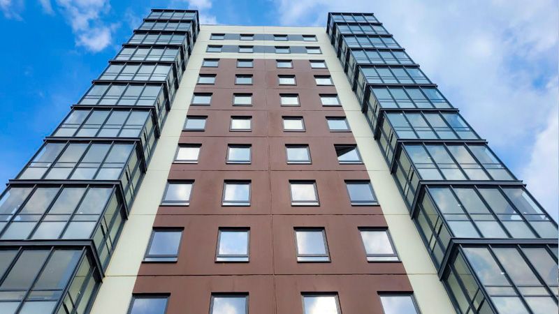 Застройщик «Колтушский Строительный Комплекс» реализовал дом высотой от 9 до 14 этажей с аккуратной архитектурой и фасадами, оформленными светлой штукатуркой с декоративными акцентами. Главный акцент проекта — увеличенная площадь остекления, благодаря которой квартиры наполнены естественным светом, а виды на окрестности становятся более выразительными.