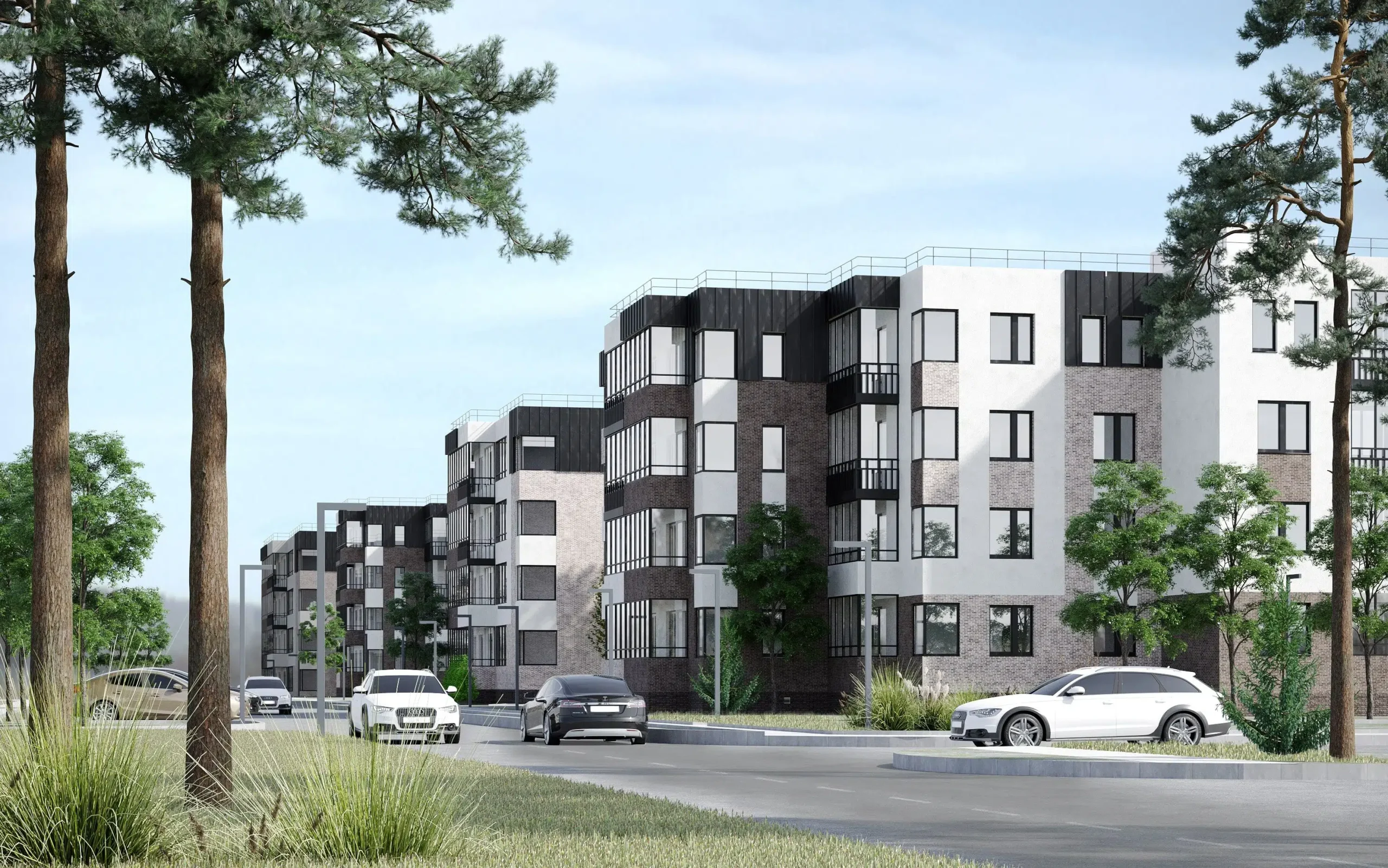 Архитектурная концепция выдержана в стиле североевропейских городов. Спокойные оттенки фасадов, панорамное остекление и зелёные зоны вокруг домов создают уютную атмосферу.