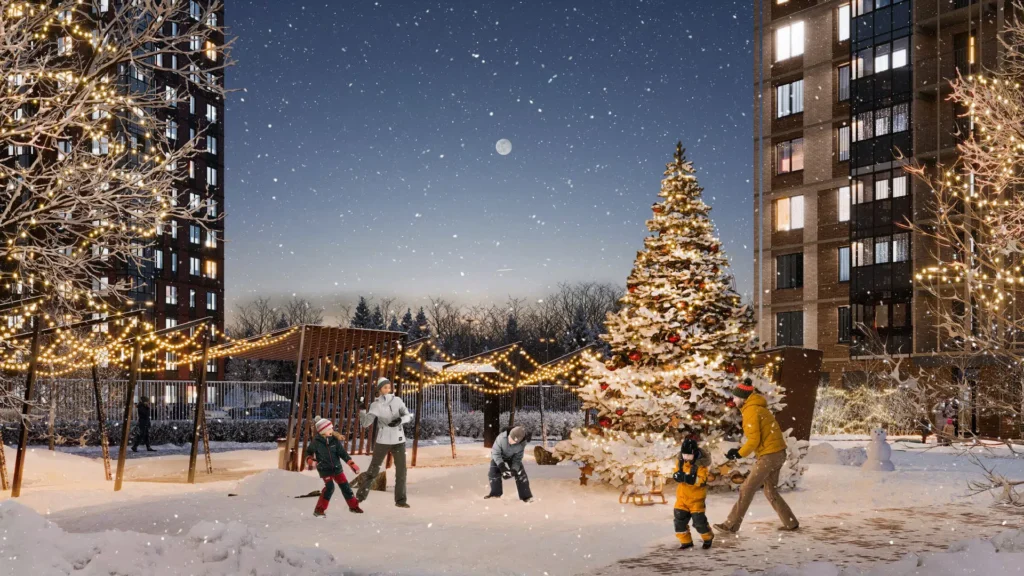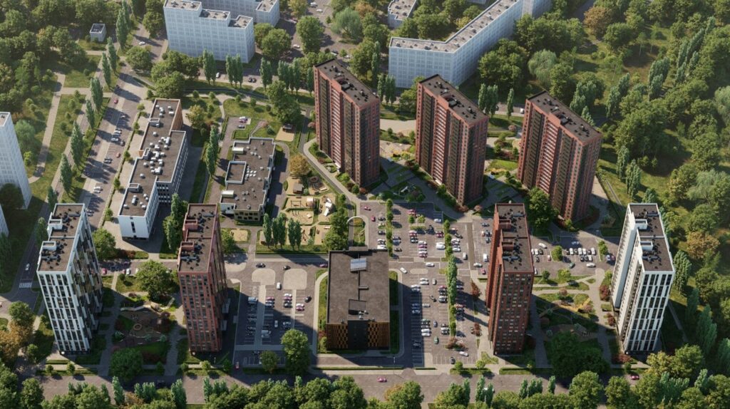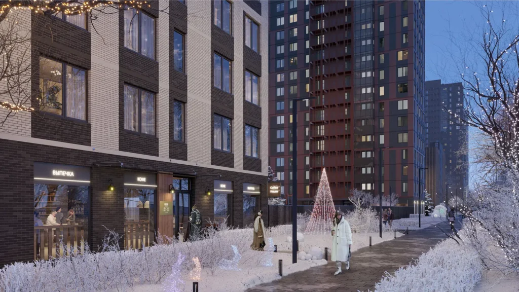 - разновысотная застройка 4–22 этажа, формирующая комфортную городскую среду;