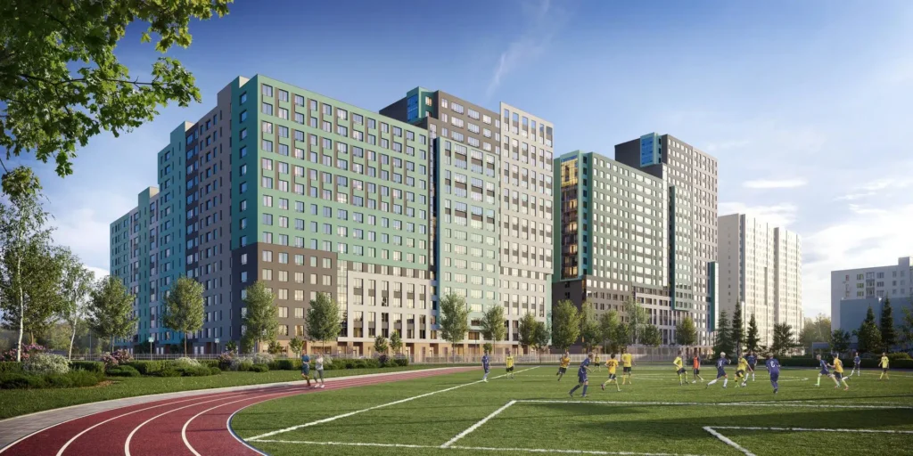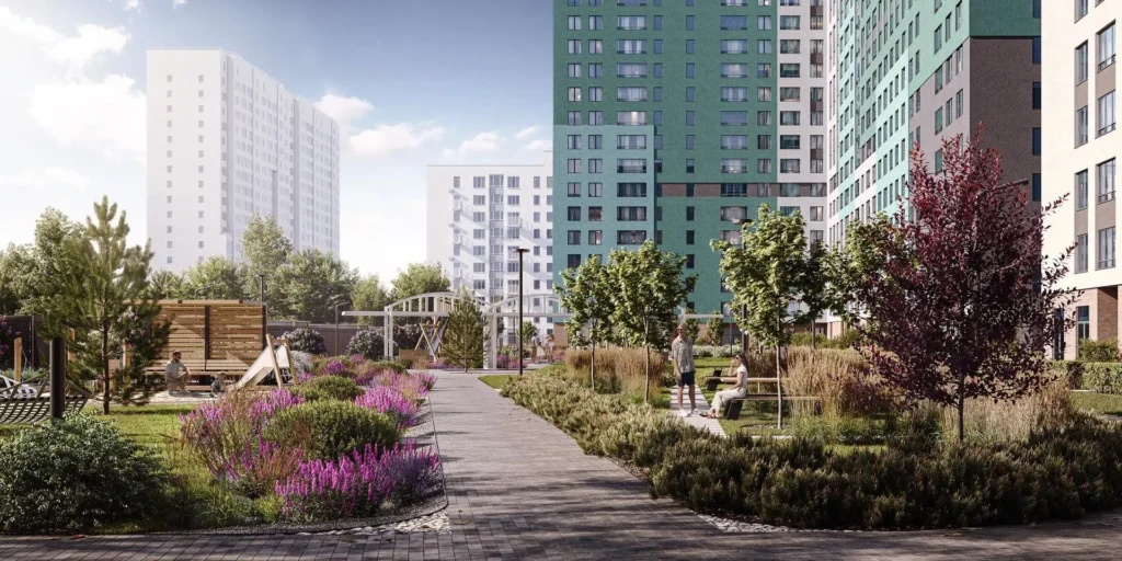 Жители смогут решать большинство повседневных задач — от детского сада до покупок и спорта — в пределах района, не тратя много времени на дорогу.